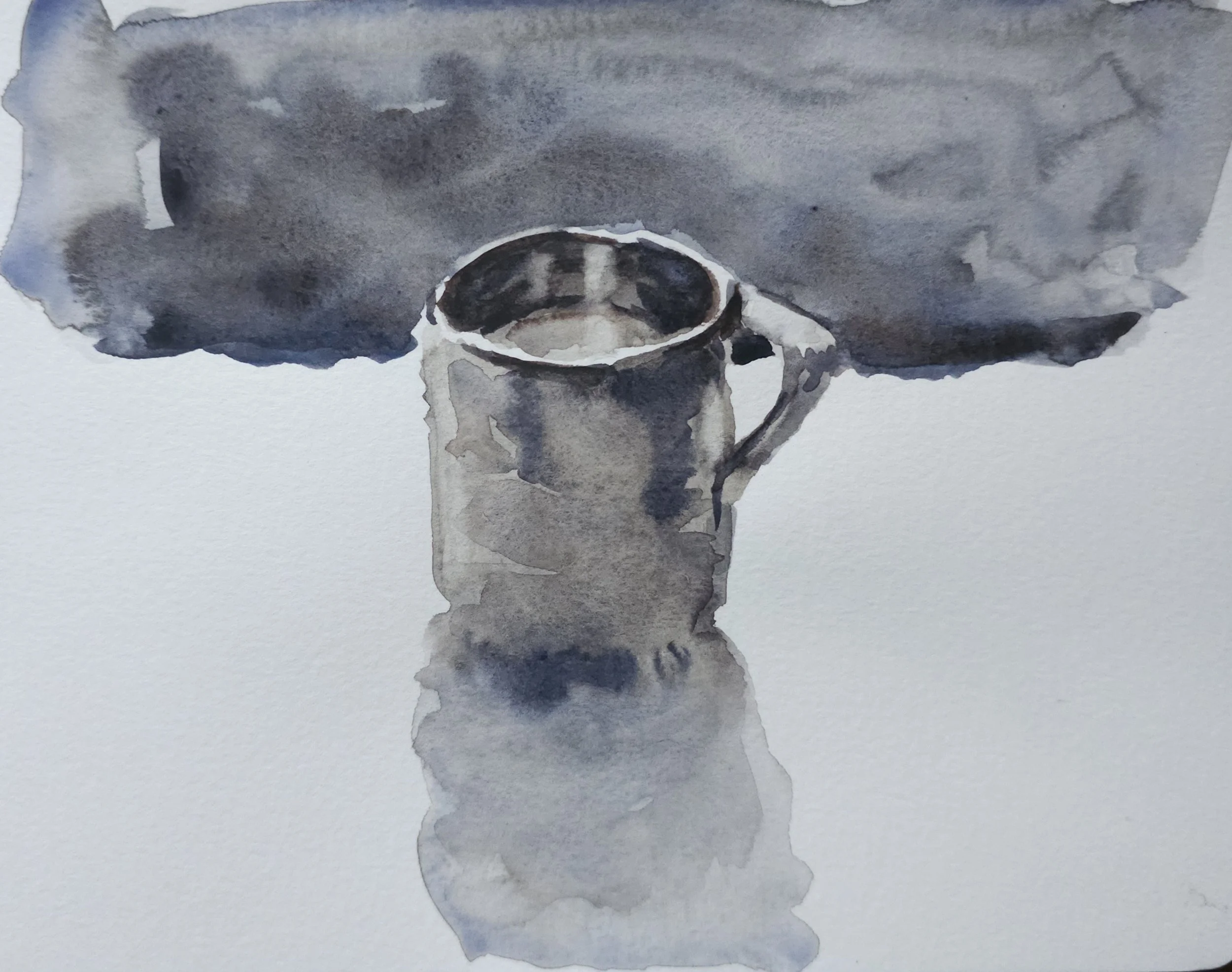 Join my private list and see unfinished artwork + exclusives Afternoon light, watercolor mug, watercolor on paper, 6 × 8 inches